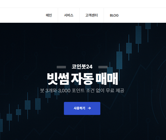 1. 코인봇24 빗썸 페이지에서 사용하기 버튼을 누르면 자동 매매 봇 사용을 위한 로그인 화면으로 이동됩니다.