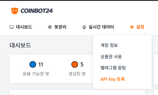 3. 처음 로그인하시면 자동 매매를 위해 빗썸에서 API Key를 생성한 뒤 Key를 코인봇24 빗썸 자동 매매 봇 서비스에 등록해 주셔야 합니다.
